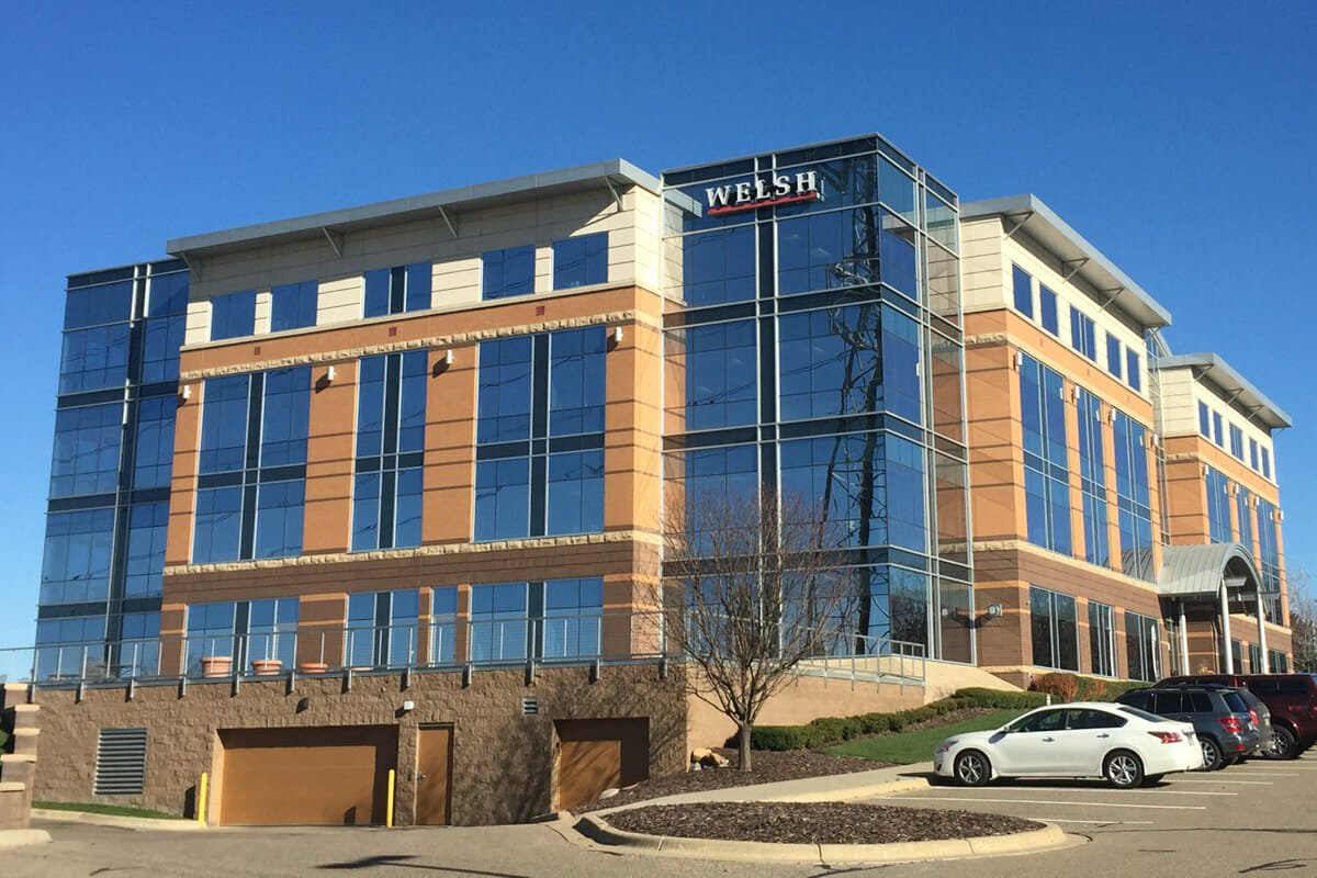 This corporate headquarters building is a 4-story, 99,500-square-foot building on an 18.9-acre site along Baker Road in Minnetonka, Minnesota. All divisions of Welsh Companies were involved in the construction of the project. This building boasts many common spaces that introduced unique problems, including a shared training room, individual offices, conference rooms, a kitchen area, staff showers, underground staff parking, and an outdoor patio.