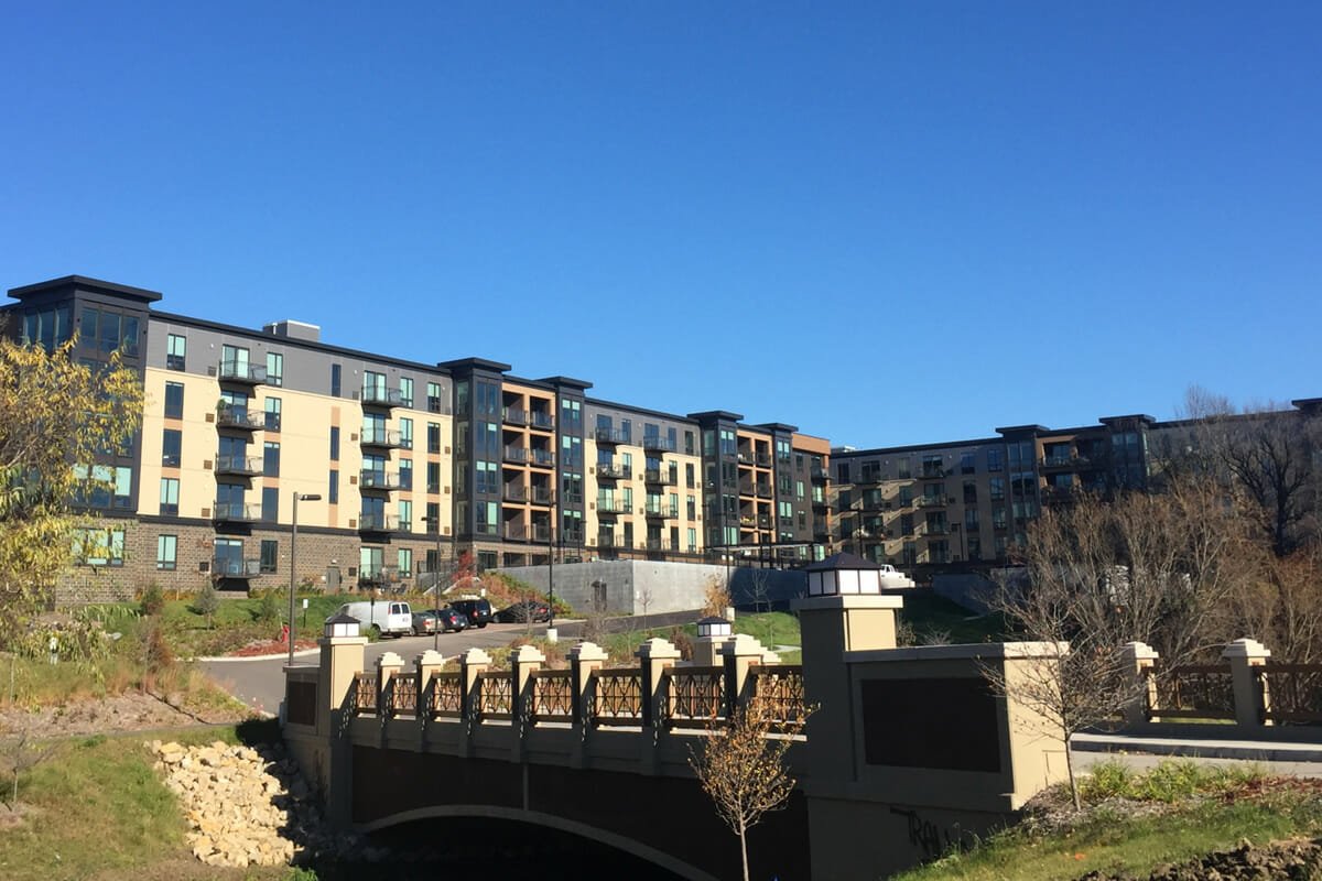 The Island Residences is a unique project on a unique 12-acre parcel of land in Minnetonka, Minnesota. This 174 luxury unit five-story building is situated in the middle of an island in a natural lake between the Carlson Towers.